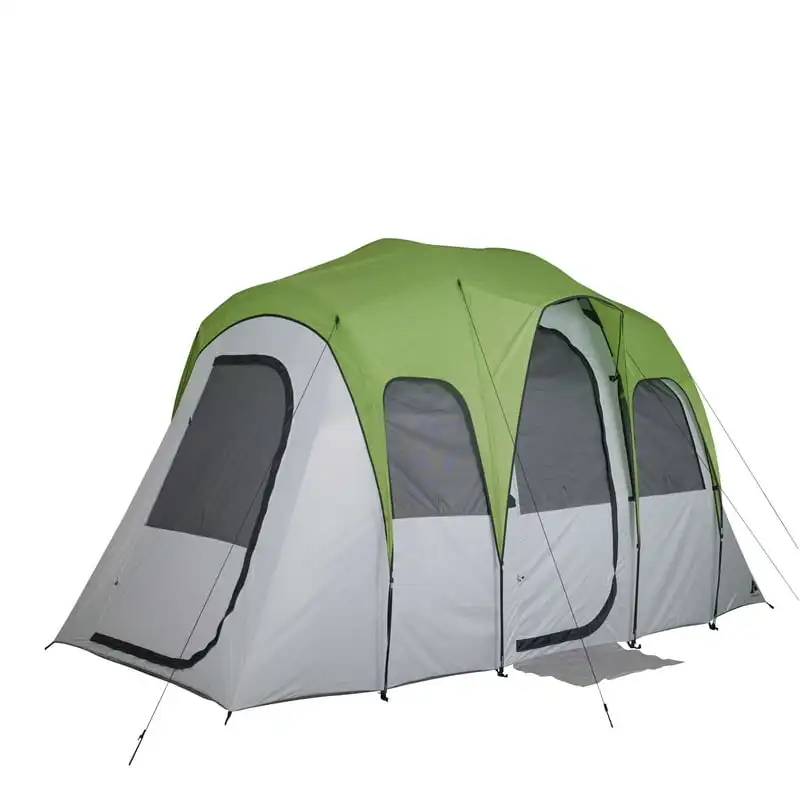 The 8-Person Clip & Camp Family Tent is the perfect tent for all your outdoor needs. This tent is easy to set up and fits in most camping spaces. The unique enlarged dome design allows for a more comfortable headroom while still maintaining that great low profile. Enough room to easily a -sized air mattress with extra room to store your gear and needed camping items. The -in mud mat at the entrance helps to keep your tent clean of dirt and debris and speaking of -ins, your tent also includes useful -in features, such as the footlocker at the side of the entrance. Along with a rainfly that protects you from inclement weather, went the extra step and seam-taped the fly to further support the already water-resistant rainfly. Your rainfly also doubles as a protective awning over the large D-shaped door. The ability to create airflow in the ways you want it. Keep it closed on cooler nights to in that warmth or open it up on warm summer nights to feel that cool breeze zipping through. The rain fly can also be detached and underneath you will notice the brilliant full mesh roof design, perfect for looking up at the vast night sky while you peacefully fall asleep. They did think of everything! The 8-Person Clip & Camp Family Tent is the perfect addition to today`s camping world. Designed and engineered with you in mind.