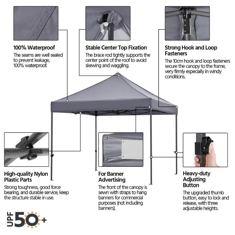 This commercial heavy-duty canopy is height adjustable for different needs. The thoughtful details of the pop-up gazebo make it very convenient to set up and disassemble. Also, a wheeled carry bag is provided for easy storage and portability. The folding pop up tent is perfect for outdoor sports, festival events, parties, etc. We are dedicated to providing you with sincere service.Easyfashion 10 x 10ft Heavy Duty Folding Tent with Wheeled Carry Bag, Light Gray: