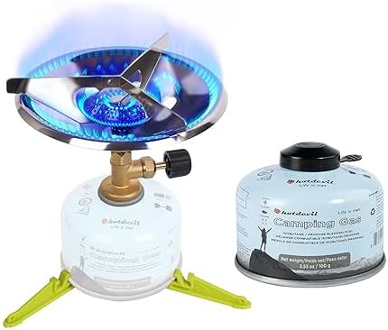 【Sturdy & Durable】: The camping stove’s gas guide tube is made of solid brass, 100% solid brass construction makes it corrosion and scratching resistant. and upper part is made of durable aluminum and stainless steel, our camping stove durable, secure links and no air leakage.