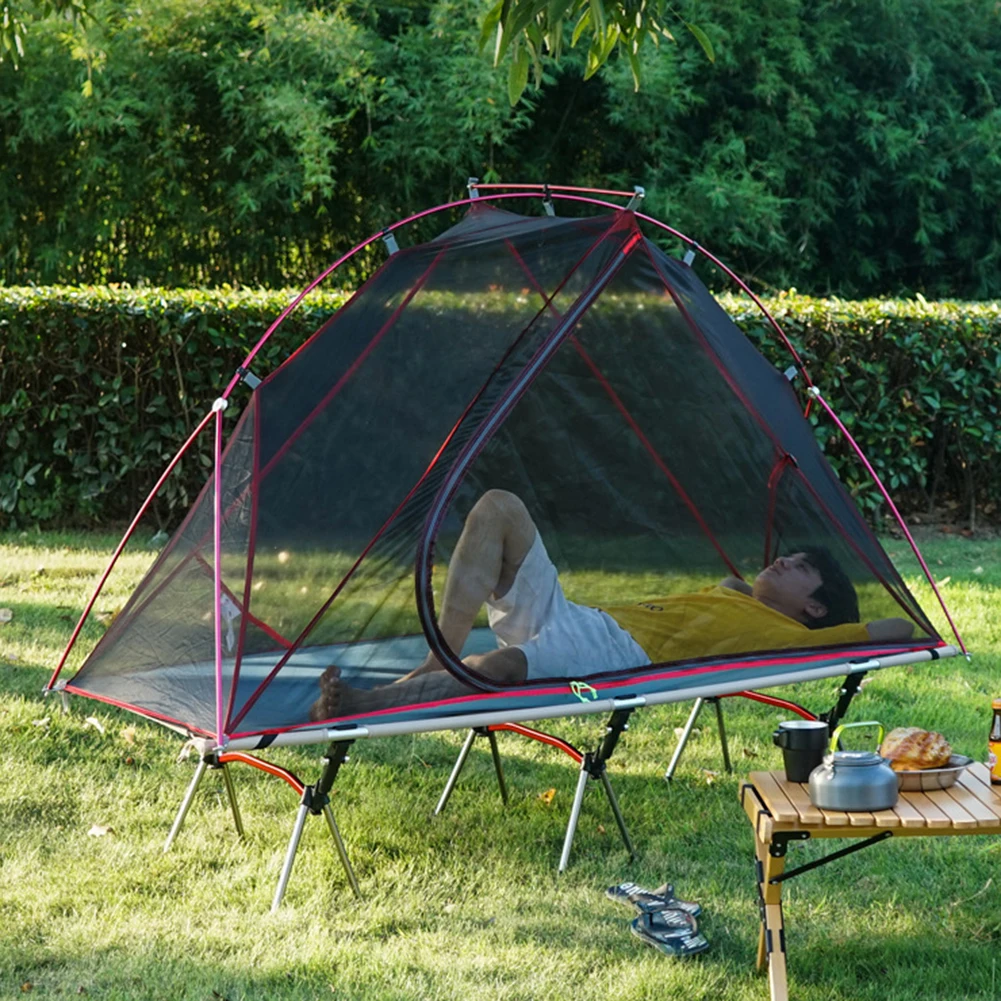 1. Portable Single-Person Tent: This easy-to-use and lightweight tent is designed for outdoor enthusiasts, providing a convenient and portable shelter option for solo camping trips. It folds easily for storage and doesn’t take up much space, making it ideal for single-person use. (Compatible with camping cots)