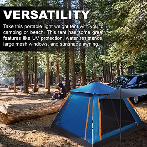 This is an automatic set up and take down camping tent. Our pop up tent is water and wind resistant, We use incredibly durable 210T rip-stop polyester for floor and rainfly. Full coverage rainfly was designed for perfect weatherproofing. Excellent water resistant tents. Every moment of your outdoor adventure is precious so with preassembled poles you can have your tent set up in about a minute. Automatic hydraulic makes the tent setup quick and easy. An ideal tent for family camping in the park, beach, mountain, and any other outdoor place. When it’s time to head home, the tent packs up into an included carrying bag until you’re off on your next adventure.