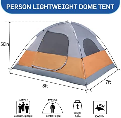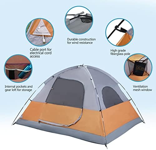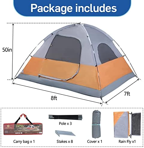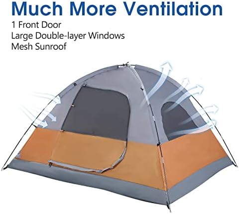 EASY SETUP & FAST TAKE DOWN:This camping tent should be very easy to erect and takedown.Manually setting up this camping tent is easy and fun, and it only takes about 5 minutes to assemble. Taking down is also simple and quickly.