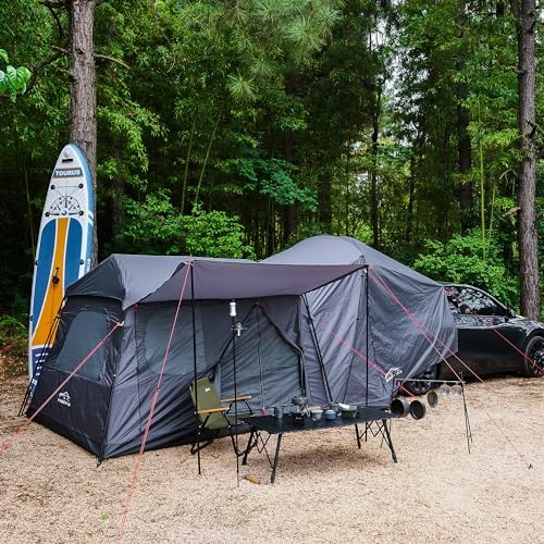 QUICK AND EASY SETUP: Benefit from the pop-up tent structure that eliminates the need for complicated setups and tie-downs, saving you both time and effort in a car camping trip.