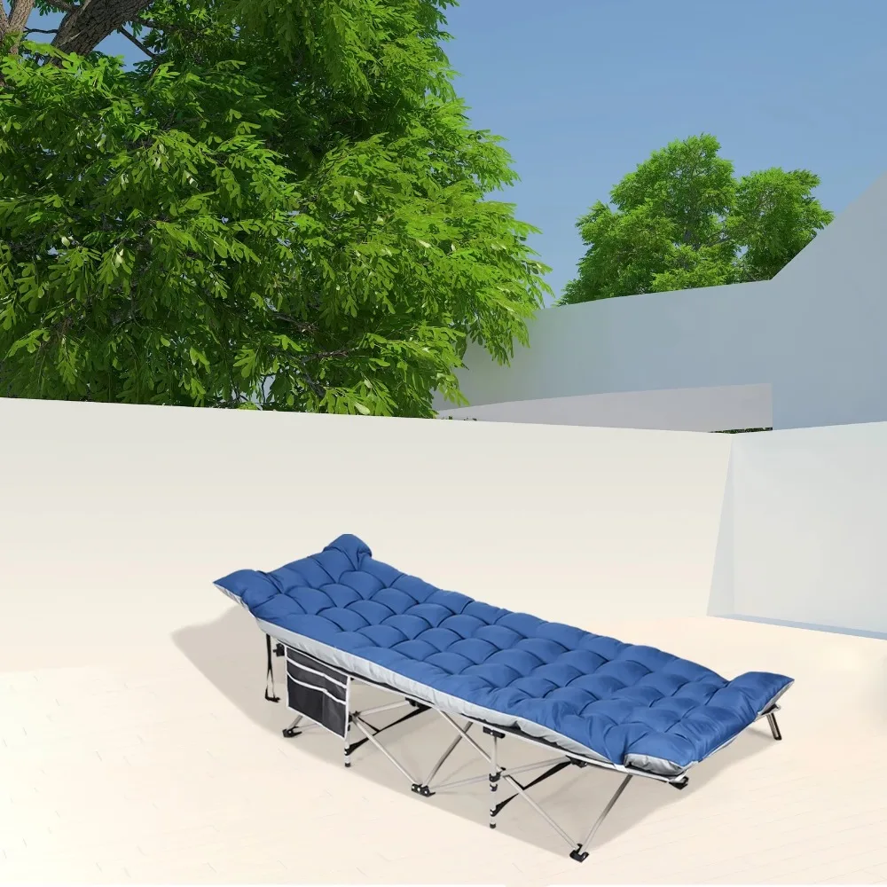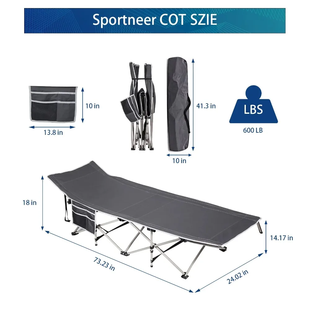 - [Double sided Pocket Design]: The two large pockets of camping cot keep all your things handy right next to you! The ultra convenient side pockets store sunglasses, books, phones, headphones, water bottles and so much more!