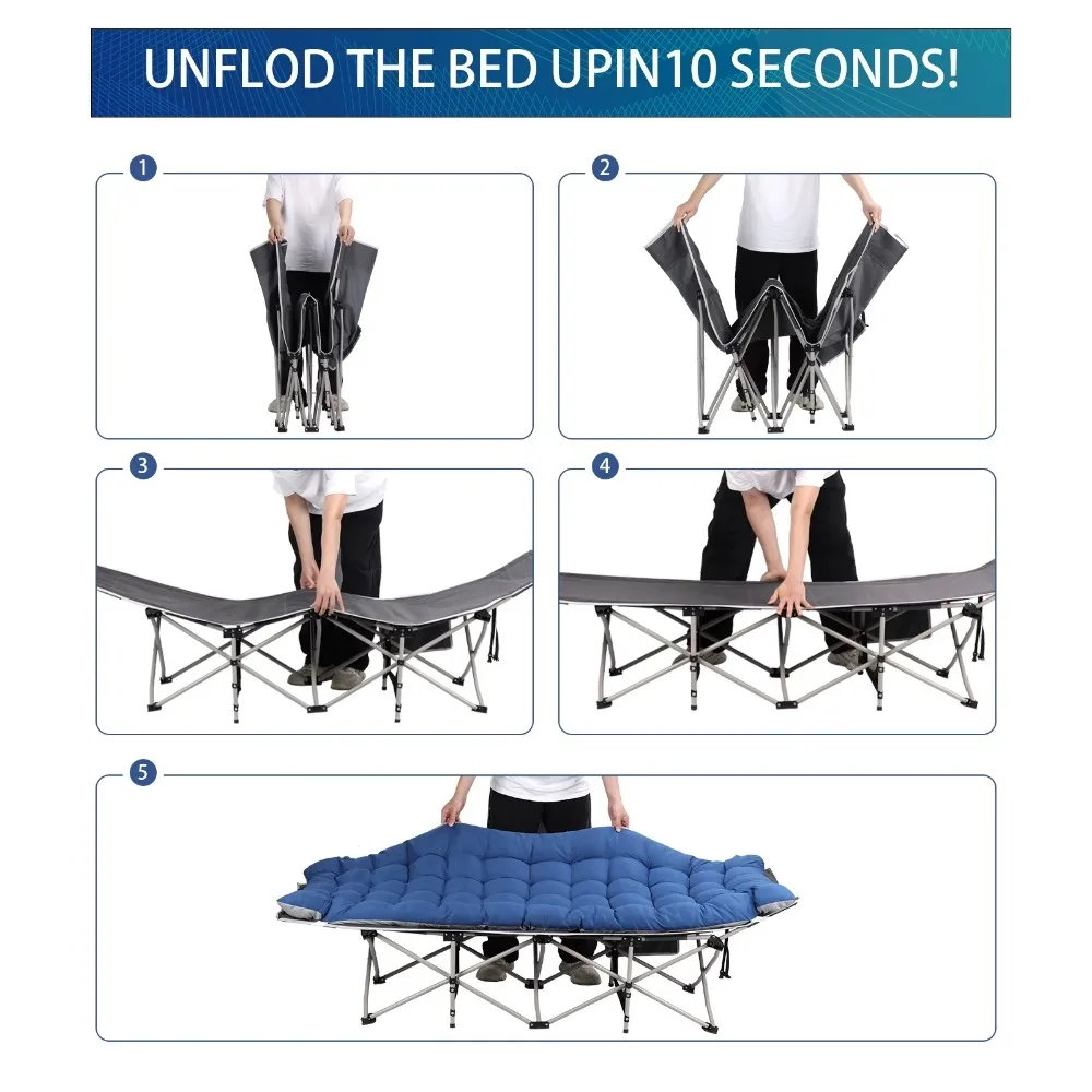 - [Foldable and No Installation Required]: The last thing you want when it’s time to sleep is a complicated setup for your bed! Thankfully the sleeping cots can be unfolded in seconds, and when you’re ready to stash this handy portable cot, it can be folded into the storage bag in under 10s!