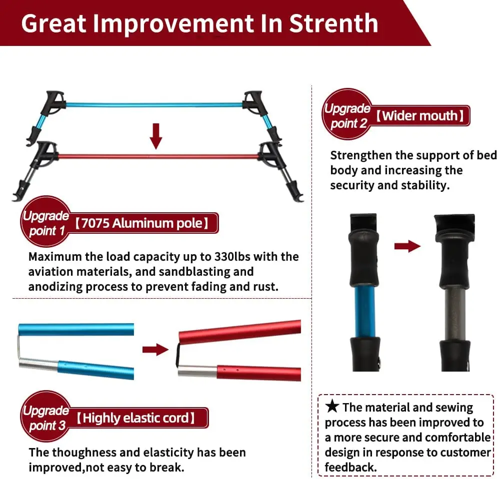 Durable aluminum alloy tubular, strong to bear a person up to 330lb.