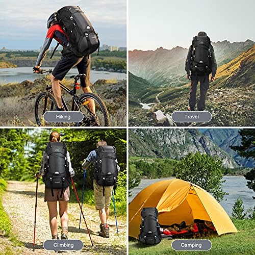 [Multi-function & 1 Year Warranty] – The hiking backpack with rain cover can protect your stuff from the rain. There are also practical zippered pockets in the top lid, sides and hip belt, two compression straps on each side. The lashing tab on the top and bottom can hold items such as a rolled-up tent or sleeping bag. There is a whistle on the chest strap, and reflective webbing improves visibility. We offer 1 year warranty, please feel free to contact us if any problems.