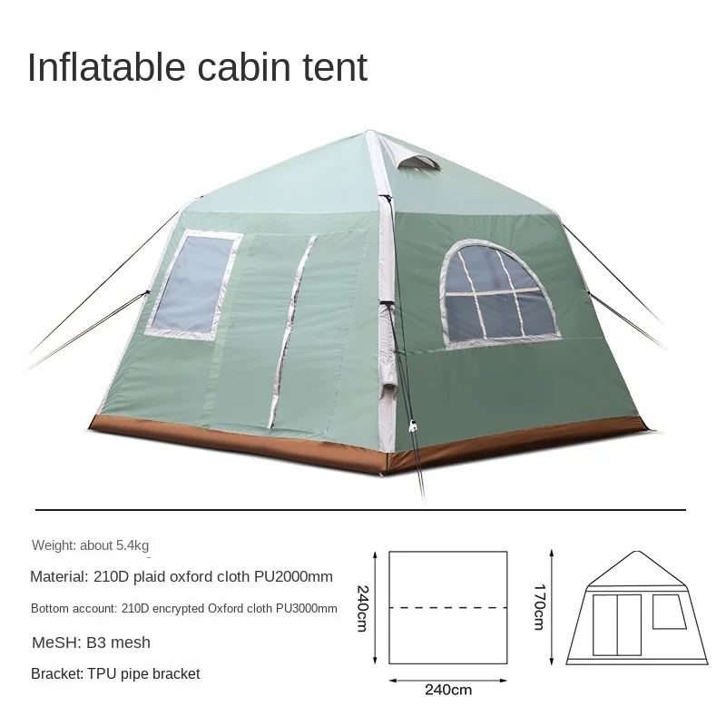Inflatable Cabin Tent for Sunny Feel, Rainproof Camping Tent, Pop Up Tent for 5-8 People, Mainland China Party Tent