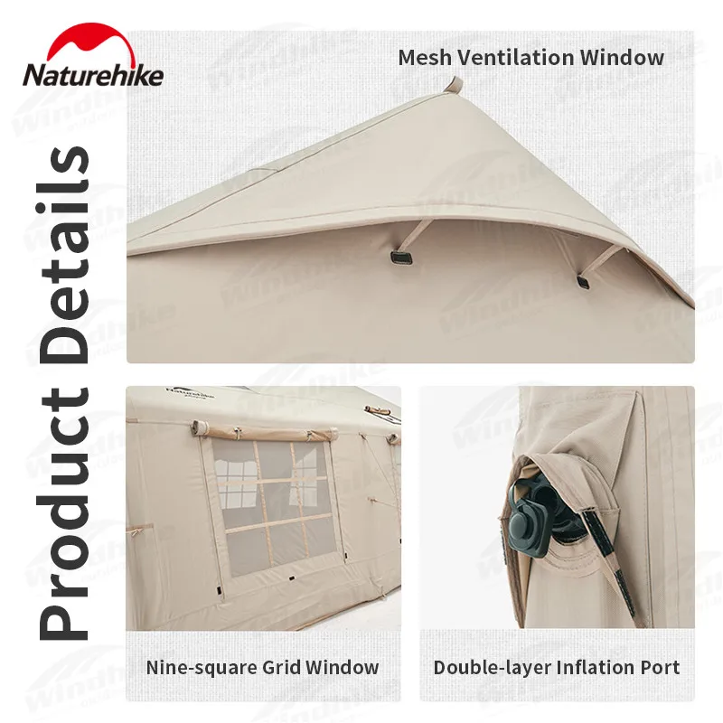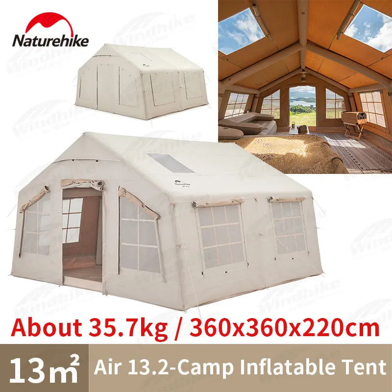 Naturehike 2023 Camping Air 13.2 Inflatable Tent 3-4 Persons Large Space 600D Polyester Luxury Family Tent High Configuration