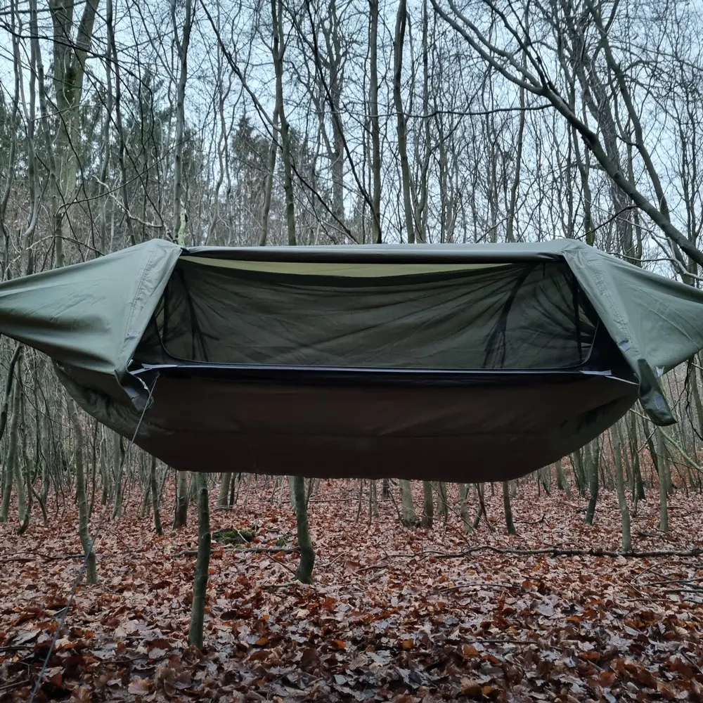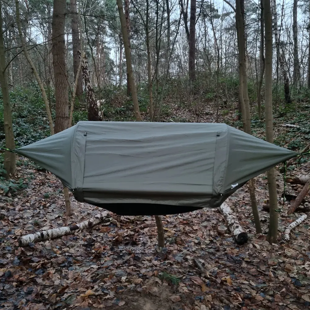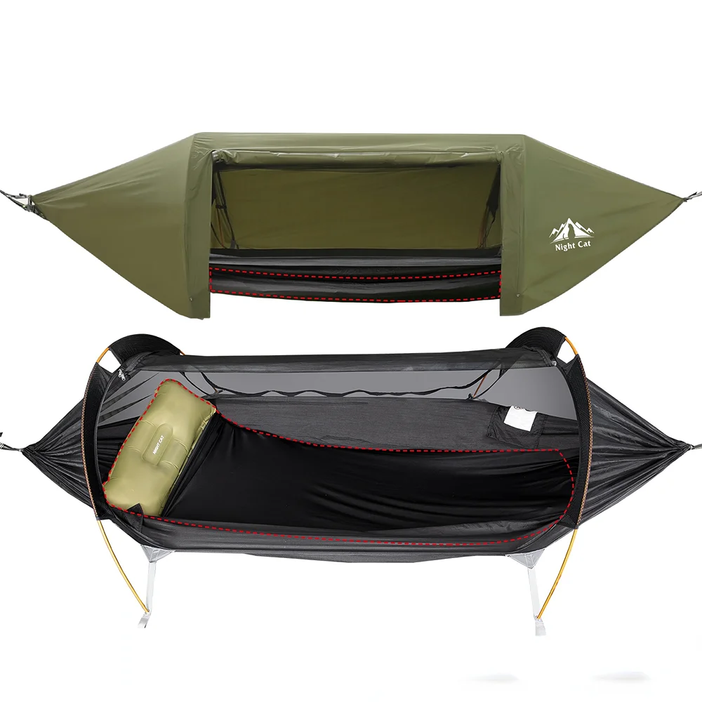 Night Cat 2 Person Waterproof Camping Hammock with Rain Fly and Bug Net Hammock Tent with Storage Pocket for Sleeping Pad
