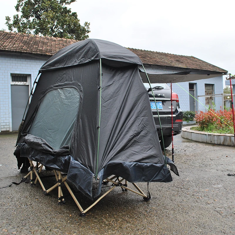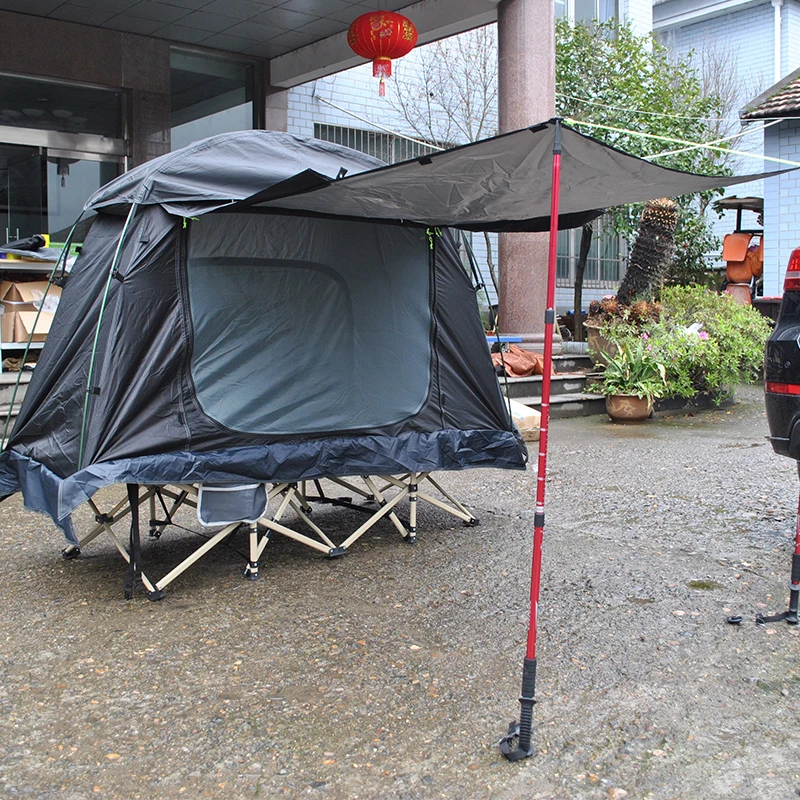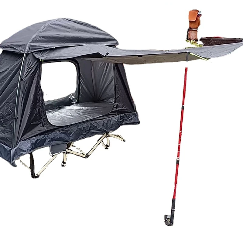 This multifunctional off-ground camp bed tent is a new creative product in the market. First of all, it is a perfect single camping tent with rain protection and sunscreen. The bottom of the tent can be combined with most of the camp bed tents on the market to become an off-ground tent through four webbing and backpack buckle.