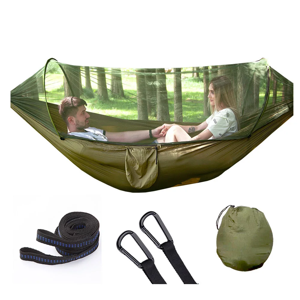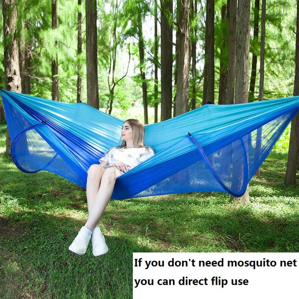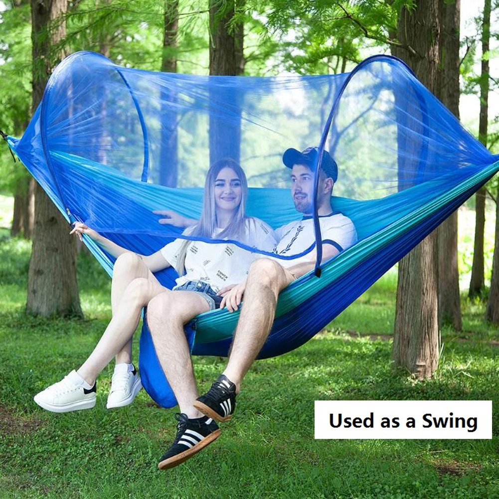 This hammock is come with mosquito net. It can prevent mosquitoes and insects harassment. You can use it in different environments.