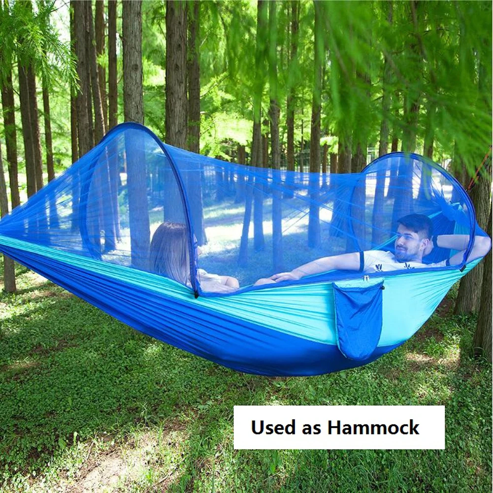 Portable Camping Hammock – Double/Single Person Folded Outdoor Travel Camping Hanging Hammock Bed with Bug Mosquito Net for Backpacking, Travel, Beach, Backyard