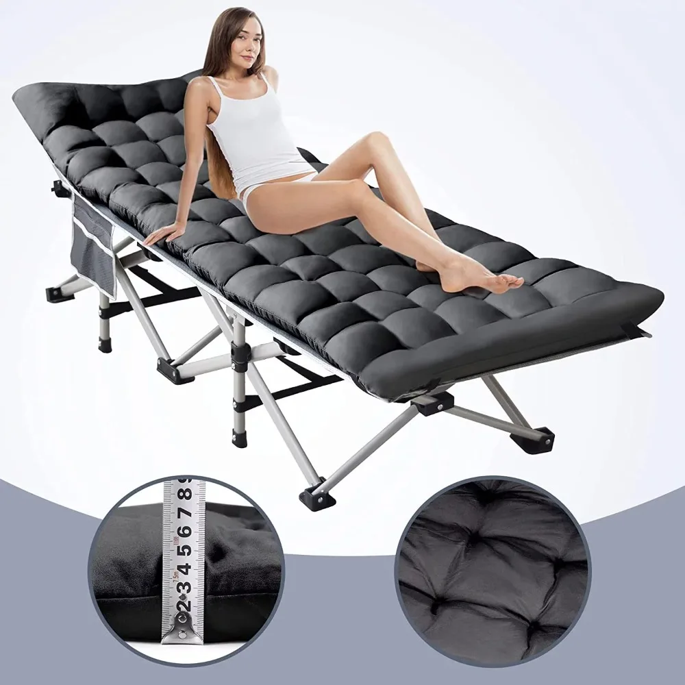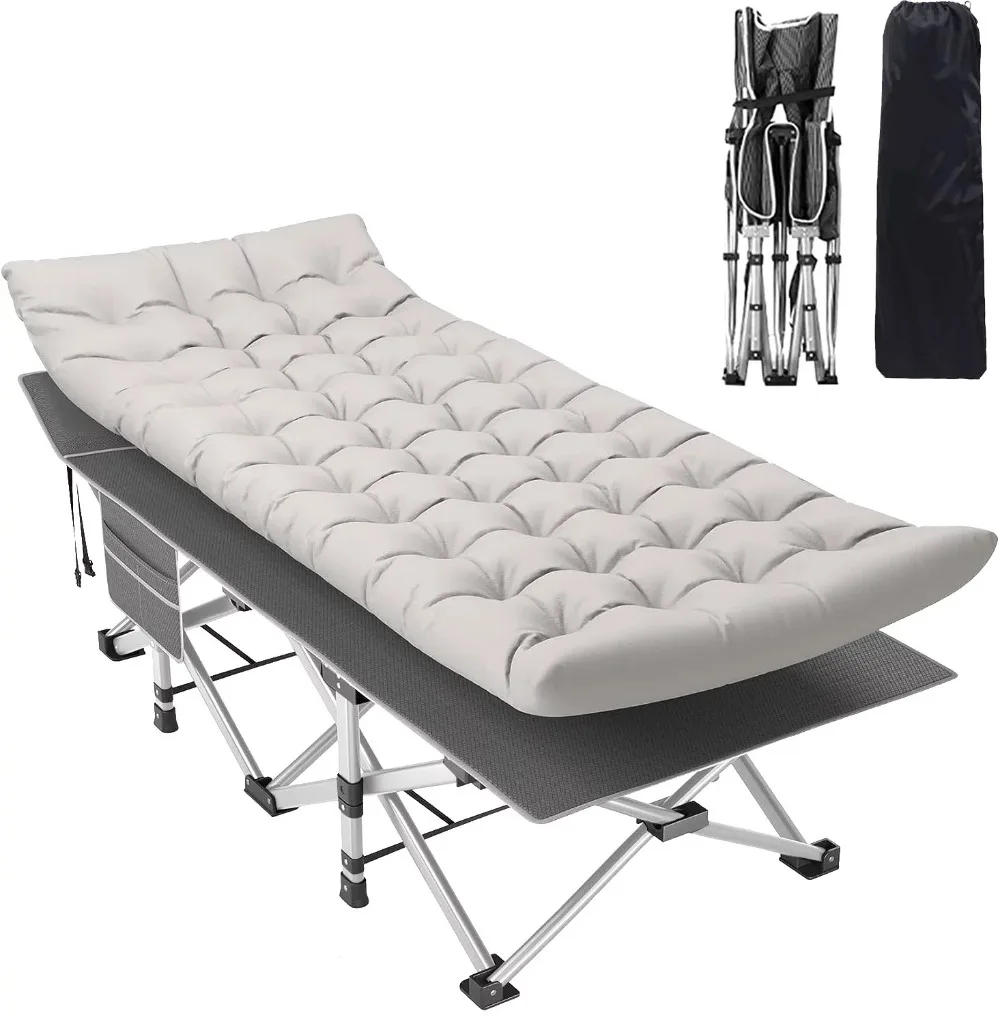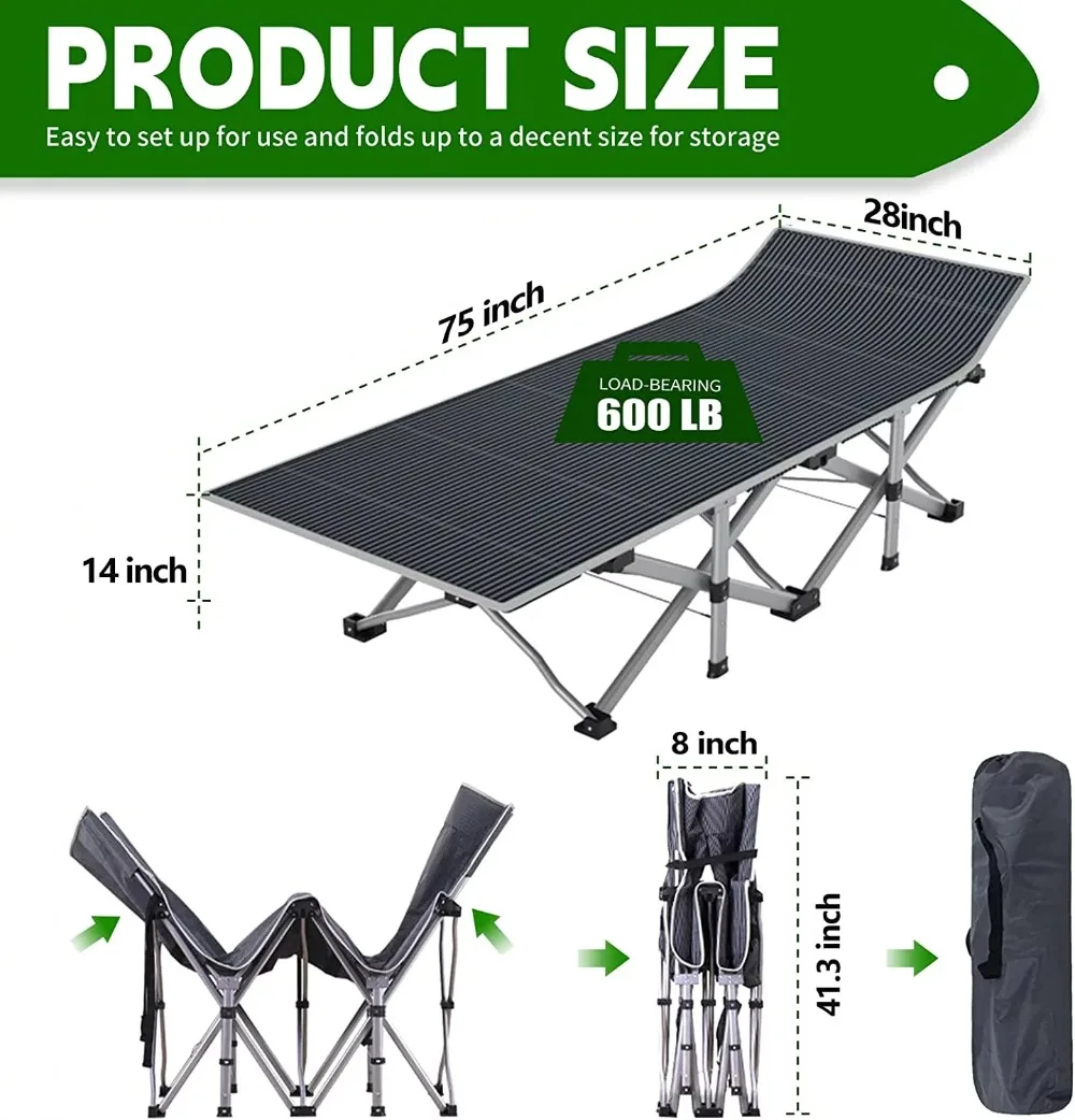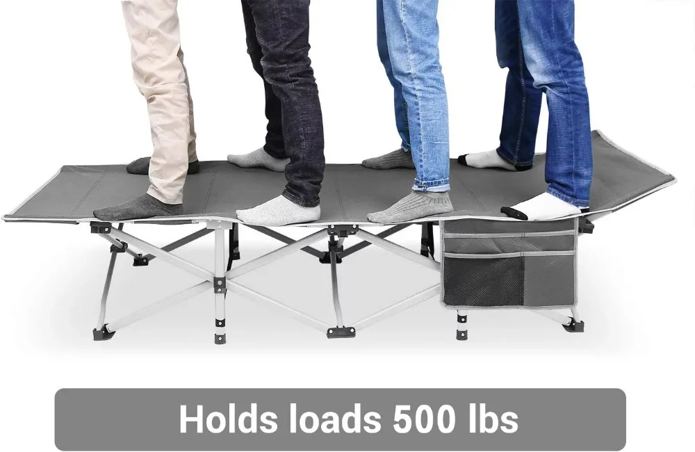 New Camping Cot is Gentle incline promises no more morning back, neck or shoulder ache,will give you a better experience for sleeping and lying,Perfect for camping, backpacking, beach, backyard, hiking, office etc.This camping cot is designed with tubular iron legs,Upgrade with 10 legs,25mm thickened oblate square tubes that adds the travel cot to best stability and carrying capacity. It easily supports up to 500 lbs at most. Perfect for tall and large size heavy people.Portable cots for adults and kids is no assembly required. You can open it less than 1 minute.You can use this sleeping cot both inside and outside.Such as office naps, travel rest or sunshine beach use.