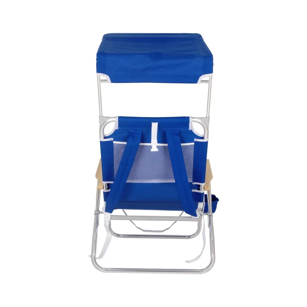 Reclining Comfort Height Backpack Canopy Beach Chair, Blue
