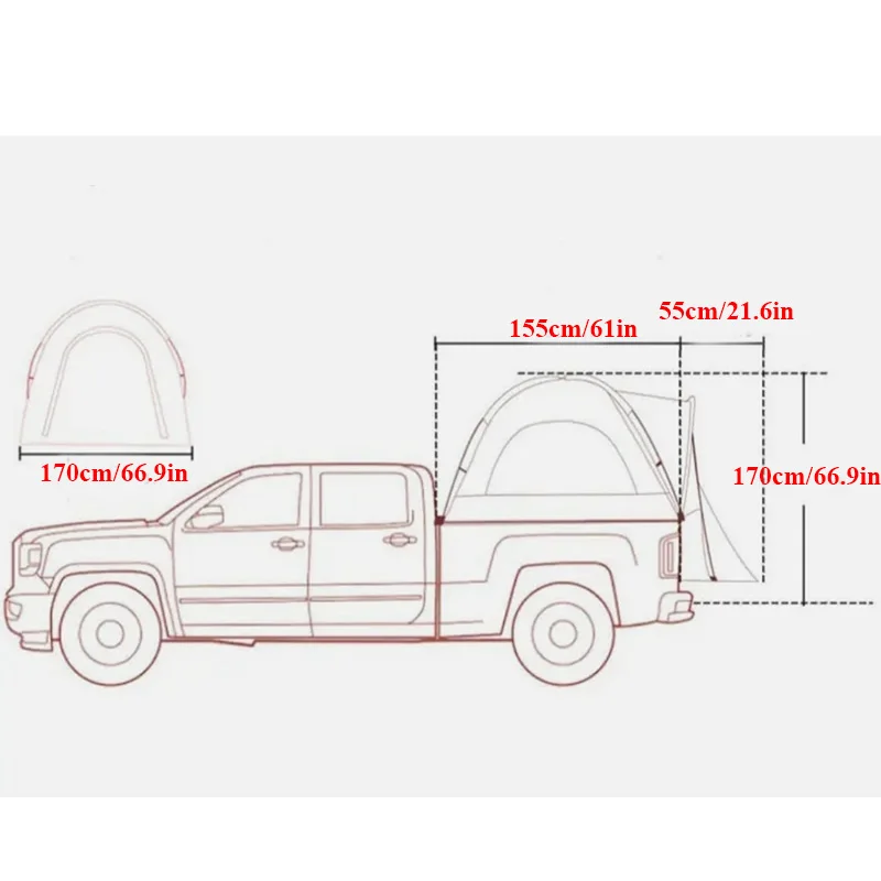 This pickup truck tent is larger and taller than the pickup truck tent in the current market. The whole tent is tightly combined with the body through the webbing, which expands the practical functions and increases the fun of traveling.