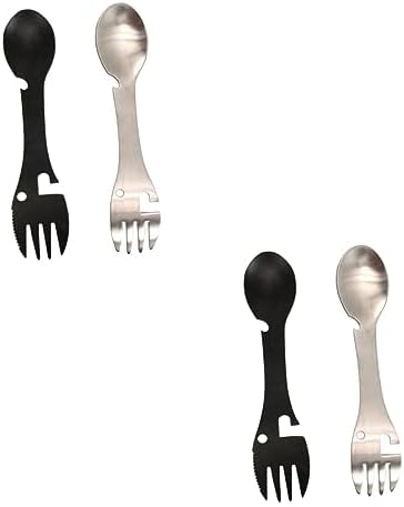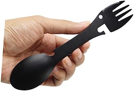 – This is a multipurpose outdoor flatware, the spoon and fork are built into each other; it can also be used as bottle and can openers camping.