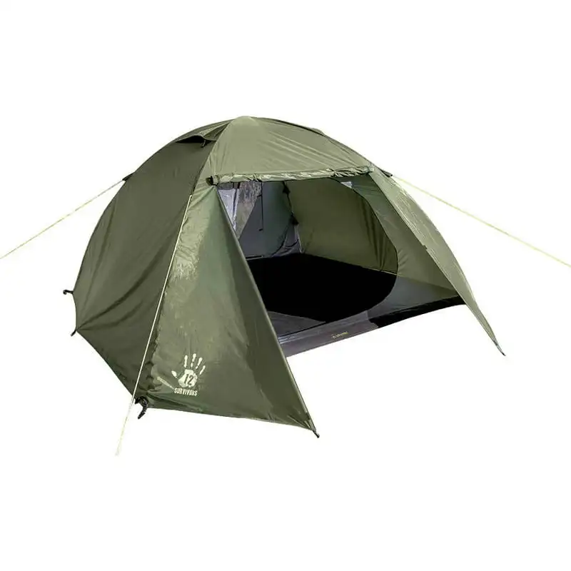 - Rainfly that extends over the doors providing cover/gear space outside of tent