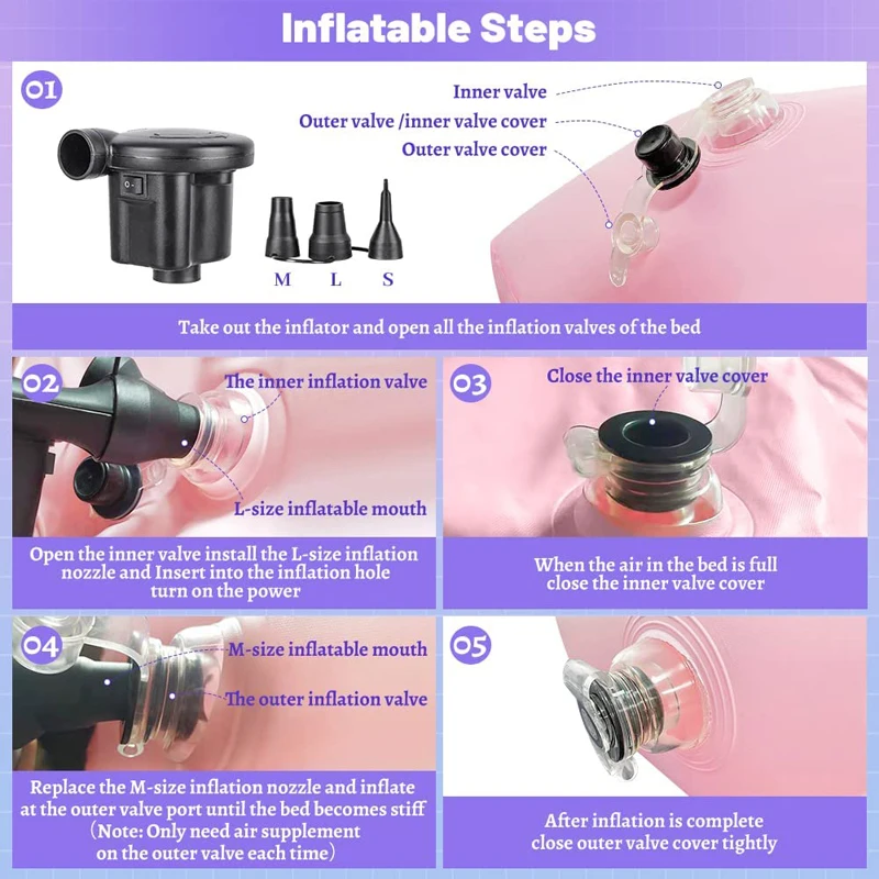 【Quick Inflation】The BBL bed with hole after surgery for sleeping is equipped with an electric air pump, which is easy to operate and quick to inflate. The BBL post surgery supplies kit for sleep only needs to be inflated to 80% saturation, to avoid over-inflating and causing the product to crack.