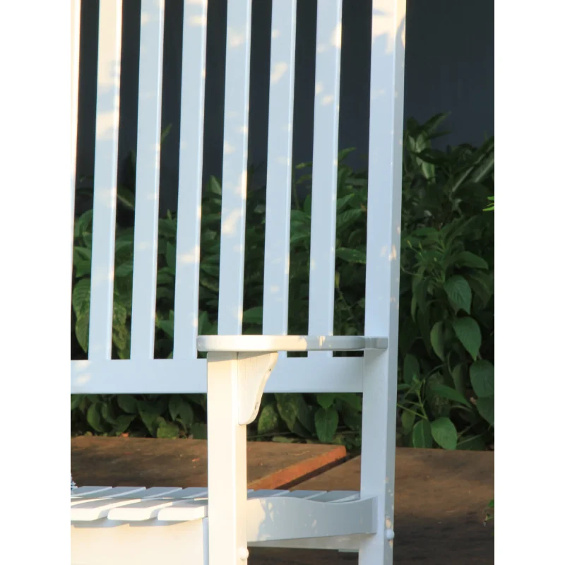 • Supportive high slatted back and wide arms makes this rocking chair a favorite spot