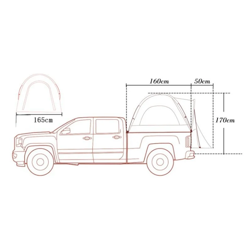4,Compatible with 5.5Ft: The Pickup Tent for Trucks is compatible with a standard 5.5ft truck bed. Please measure your car with the tailgate closed to ensure the perfect shopping experience.