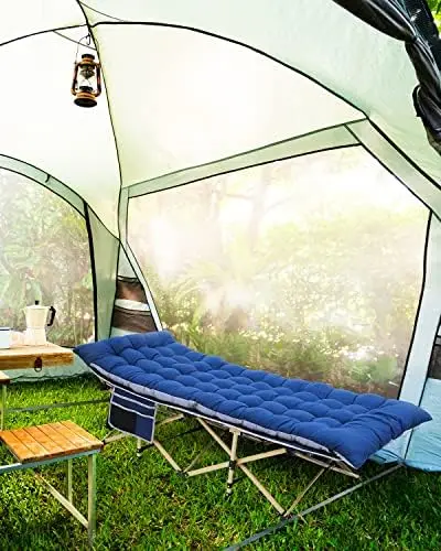 Comfortable Mattress: Camping Cot equipped with mattress, soft pad add extra comfort, you can sleep more comfortably in this portable folding camping bed. In summer, the camping paded can also be take away to increase the breathability.