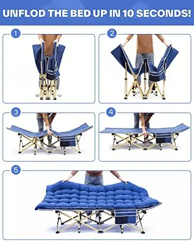 Foldable and No Installation Required: The last thing you want when it’s time to sleep is a complicated setup for your bed! Thankfully the sleeping cots can be unfolded in seconds, and when you’re ready to stash this handy portable cot, it can be folded into the storage bag in under 10s!