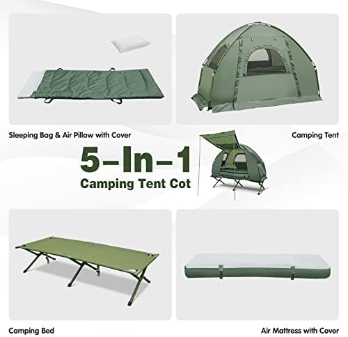 Tangkula 5-in-1 Tenda Cot, Camping Tent Combo with Awning, Air Mattress, Sleeping Bag, Air Pillow, Camping Cot, Elevated Single Cot Tent with Carrying Bag for Outdoor Hiking, Picnic, Travel
