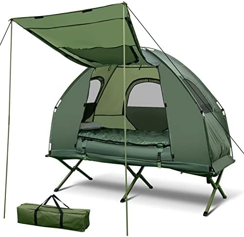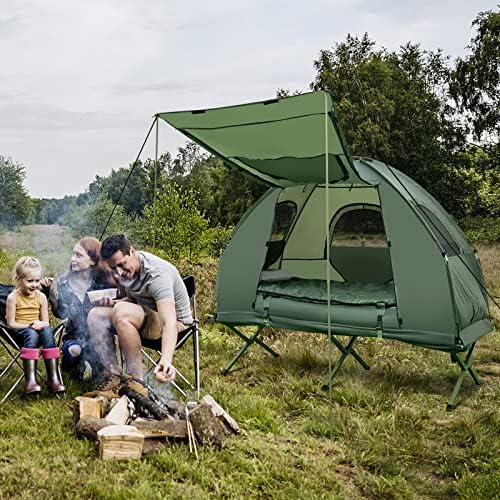 🌅Excellent Ventilation & Great Portability🌅: 4 meshed windows, zippered door and an awning are supplied to promote air flow for coolness. At the end of camping, fold the camping tent cot in seconds, store it in an included carry bag, drive yourself home, everything is simple.