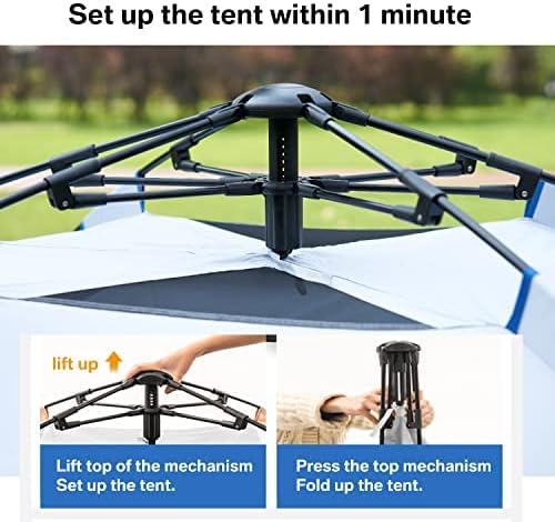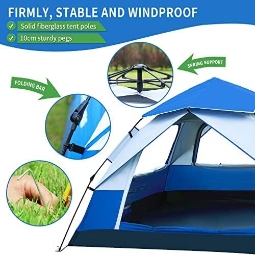 Echosmile Pop Up Palapinė Family Camping Tent, 4 Person Instant Tent, Easy Set Up Tent, Lightweight Portable Automatic Tent, Waterproof Dome Tent, Windproof Outdoor Backpacking Tent for Travel Hiking