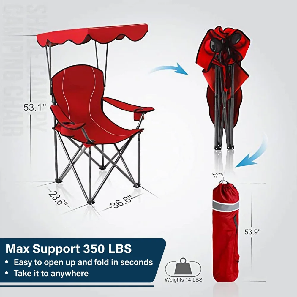 - Easy to Set up and Carry: This portable camping chair with shade is lightweight and foldable. It is easy to set up and no tools required. The folding camping chair with a carrying bag is easy to store and transport.