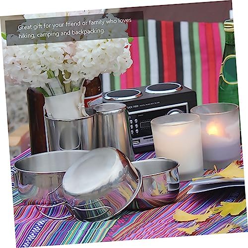 – for your friend or family who loves hiking, camping and backpacking hiking accessories stainless steel pot camping cooking set stainless steel serving bowls stainless steel cup camping bowl with folding handle hiking cooking gear backpacking bowl camping cup backpack cooking equipment portable cookware travel.