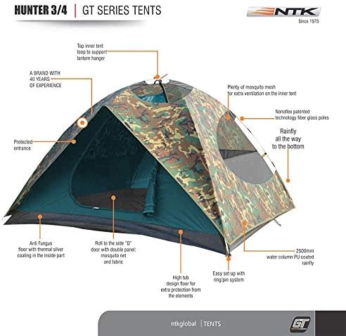 NTK HUNTER GT 3 to 4 Person 7 by 7 Foot Outdoor Dome Woodland Camo Camping Tent 100% Waterproof 2500mm