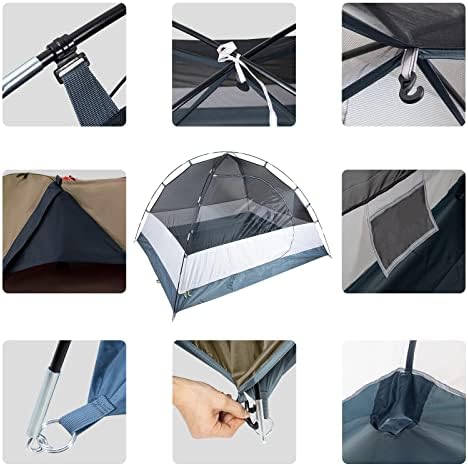 🌳Double Layers & Waterproof🌳 Inner layer of this outdoor tent is B3 high quality Mesh Net avoiding all of flies to enjoy nice air flow. Outer layer is made of rip-resistant 190T Polyester PU 3000 coating, reinforced waterproofing tape on 4 corners and every seams, withstanding heavy rain & wind, even a thunderstorm