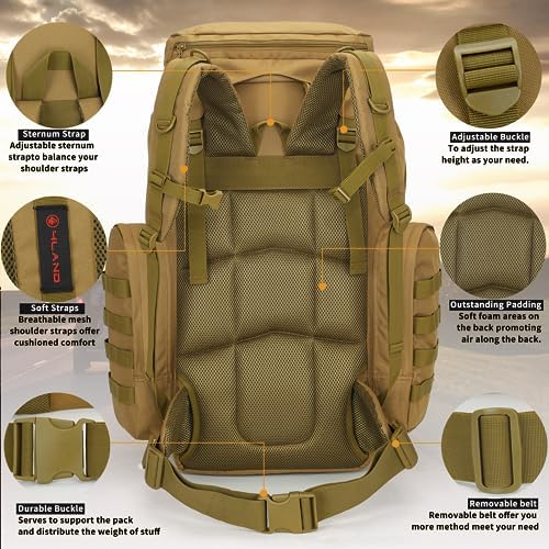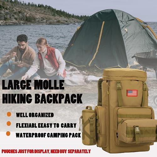 GOOD CHOICE AS TRAVEL BACKPACK:With large capacity and molle system, It is a good choice as camping backpack, extra large backpacking backpack for men. can used as a 3 days tactical backpack,great for hiking ,climbing,travelling and other outdoor activities