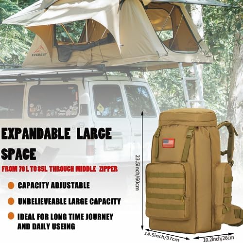EXTENSIBLE LARGE SPACE:The large camping backpack built double durable zipper chain on both sides.Which offers a more flexible method to adjust compartment space due to different scene. From 70L to 85L! Match with military grade molle system, Offer you another choice to hang pouchs or gears. Just try this extra large camping backpack for men, you will be surprised as it’s really worthy.